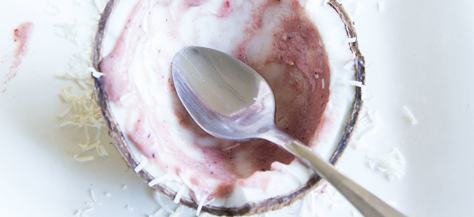 3. For the smoothie, blend all ingredients until smooth. Serve immediately in your coconut bowls and eat with a spoon.